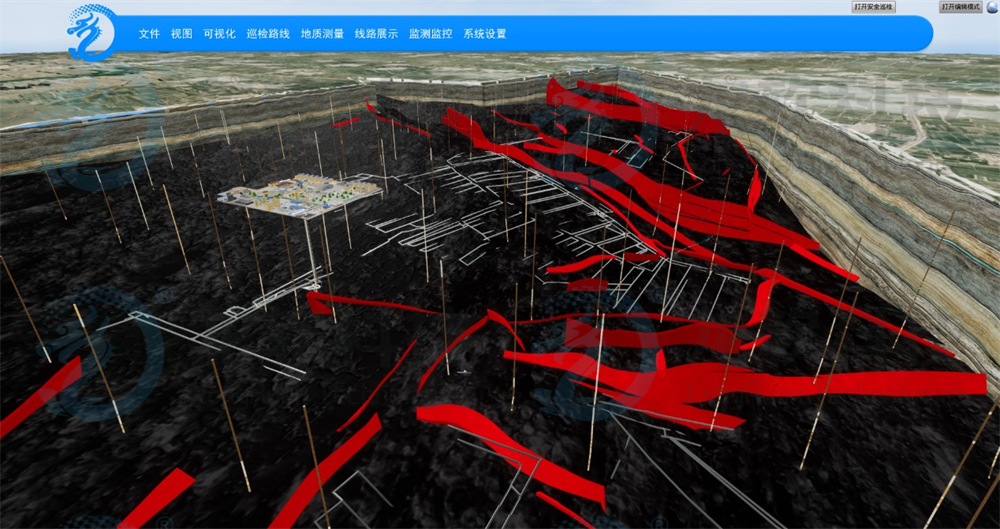 系統按照《煤礦防治水細則》、《煤礦地質工作規定》和《煤礦安全生產標準化管理體系基本要求及評分方法》等對煤礦地測防治水信息化的相關規定,以及國家發展改革委等八部委聯合下發的《關于加快煤礦智能化發展的指導意見》、中國煤炭學會標準《智能化煤礦(井工)分類、分級技術條件與評價》(T/CCS 01- 2020)對智能地質保障的要求,為安全生產、地質災害預警、智能開采、智能掘進、智能管控等提供高精度三維地質模型和業務數據的集成與應用服務為目標,采用云計算、協同TGIS、虛擬現實、移動互聯網、大數據分析等先進技術,基于一張圖管理理念,開展高精度地質探測、物探數據再解釋、多源地質數據融合等,建立地質信息數據庫,形成煤礦專業地理信息系統平臺、地質一張圖Web協同平臺、高精度透明地質保障平臺、地質大數據分析與隱蔽致災預警報警分析和預警平臺,形成面向云計算和大數據的智能礦山透明地質保障系統。